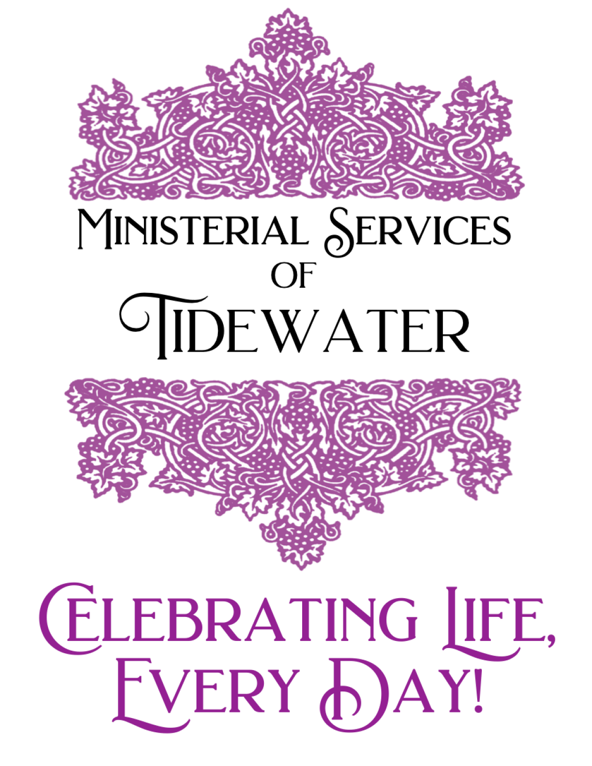Welcome to Ministerial Services of Tidewater! We would love to talk with you further about officiating your Wedding or Vow Renewal, conducting a Funeral or Life Celebration Service, celebrating liturgies for beloved pets, celebrating a Baptism or Child Dedication, a Home Blessing or Farewell, or other service designed to meet your needs.